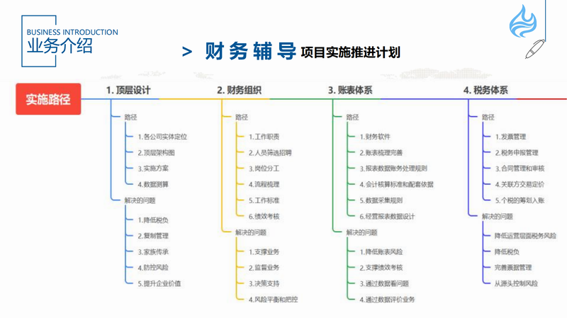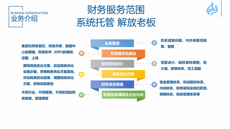 公司核心成员均来自国内200强企业高管,兼具实操经验与战略视野,深度理解行业痛点与政策导向。通过企业教练形式,帮助企业实现真正的业财税融合,打破部门壁垒,让业务、财务、税务数据实时联动,提升企业整体运营效能。公司服务覆盖超200家企业,典型案例包括某制造业企业通过税务优化年节税超百万,某科技公司通过财务共享体系降低人力成本18%。